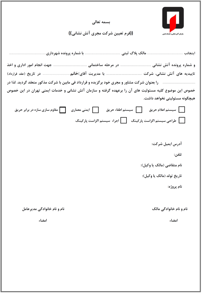 این فرم باید توسط مالک (یا نماینده قانونی او) و شرکت مجری آتشنشانی امضا شده و سپس در دفاتر خدمات شهرداری به ثبت برسد.