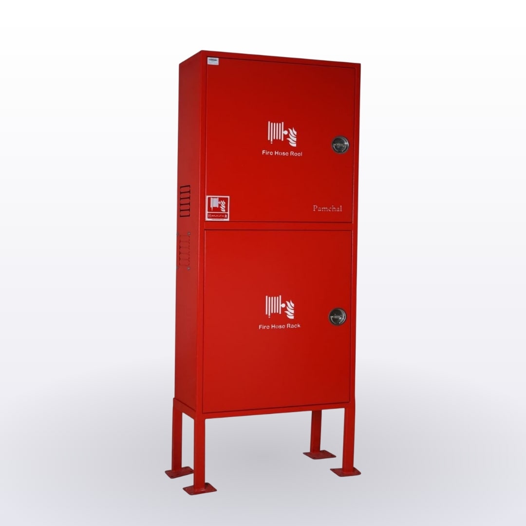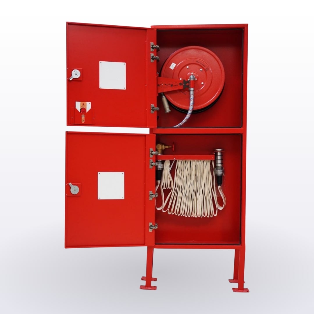 جعبه آتشنشانی دو طبقه فولادی پایه دار، مجهز به قرقره هوزریلی و هوزرک برزنتی، راهکاری کارآمد برای افزایش ایمنی در حیاط ادارات و کارخانهها، و فضاهای باز بهشمار میرود.